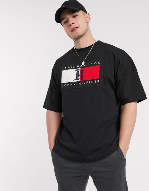 Tommy Hilfiger X Lewis Hamilton Capsule T Shirt Avec Logo Drapeau Sur Le Devant Noir Asos